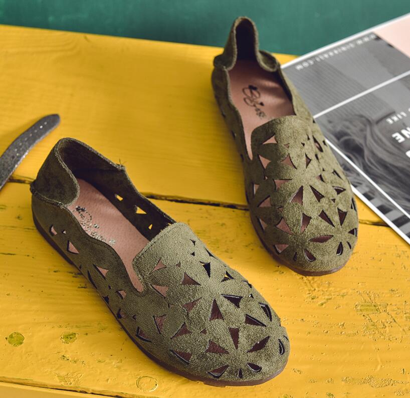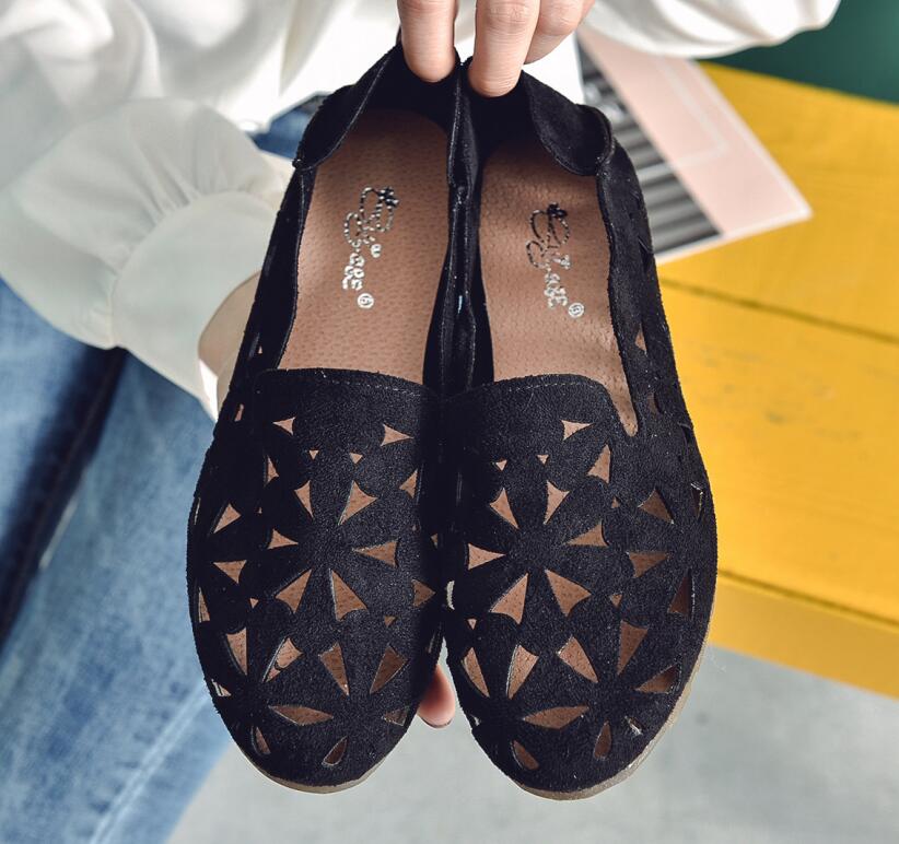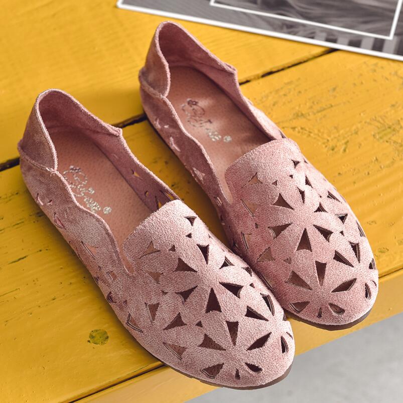 Summer Women Flat Shoes Soft Casual Loafers Female Ballet Flats Sweet Cut Out Suede Slip On Moccasins Breathable Ladies Footwear